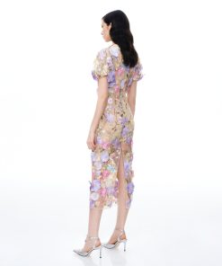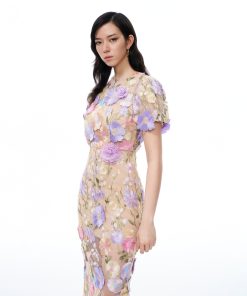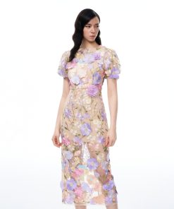 Alaric Round Neck 3D Floral Embroidered Maxi Dress – Pastel Multi