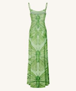 Dragonfly Totem Maxi Dress – Green