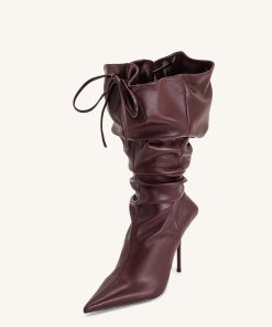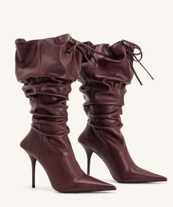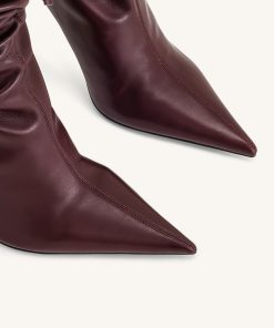 Olivia Leather High Heel Boots – Burgundy
