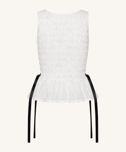 Smocked Peplum Sleeveless Top – White