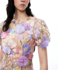 Alaric Round Neck 3D Floral Embroidered Maxi Dress – Pastel Multi