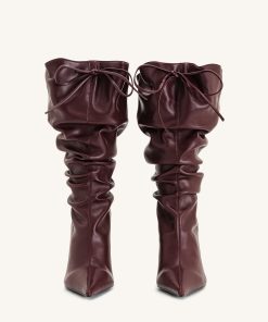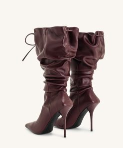 Olivia Leather High Heel Boots – Burgundy