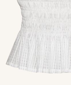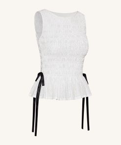 Smocked Peplum Sleeveless Top – White